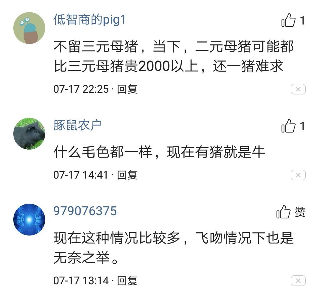 不少養(yǎng)戶在網絡上討論三元母豬留種