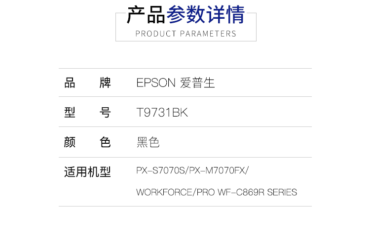品牌: 愛普生(EPSON) 商品名稱:愛普生T9731BK原裝黑色墨水袋 商品編號:6628376