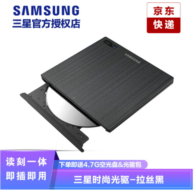 商品名稱:三星(SAMSUNG)光驅外置臺式機筆記本USB2.0接口移動刻錄機 拉絲黑 拉絲黑色